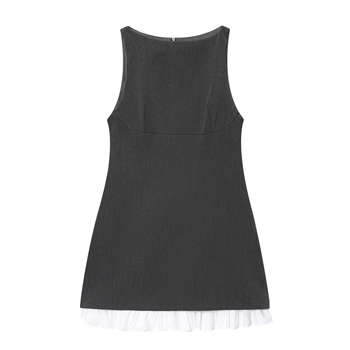 Vestidos Mini Casuales de Verano para Mujer, Cuello Redondo, Sin Mangas, Color Gris, Cierre Trasero con Cremallera