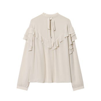 Blusa Holgada de Moda Casual con Cuello Redondo, Cordones, Volantes, Color Beige, Manga Larga, para Mujer