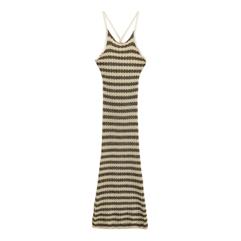 Vestido largo de punto a la moda informal de Color Beige con patrón de rayas ahuecadas en la espalda para mujer