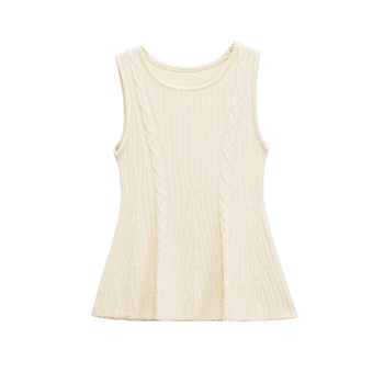 Camiseta sin mangas de moda informal de punto de color beige con cuello redondo para mujer
