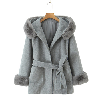 Giacca di moda Casual con cappuccio da donna con fascia a manica lunga di colore grigio
