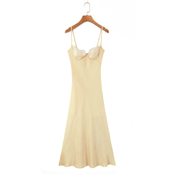 Spalline sottili di colore giallo Casual moda estate abito sottoveste Midi per le donne